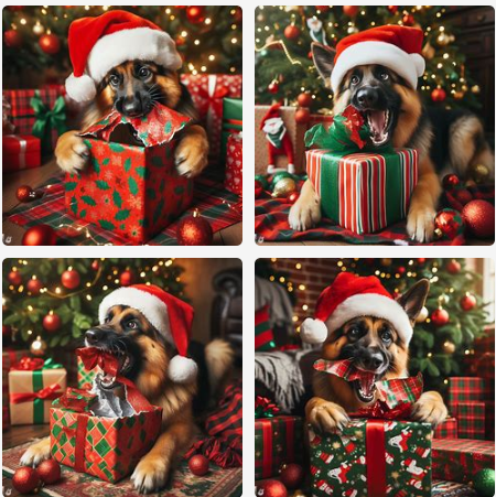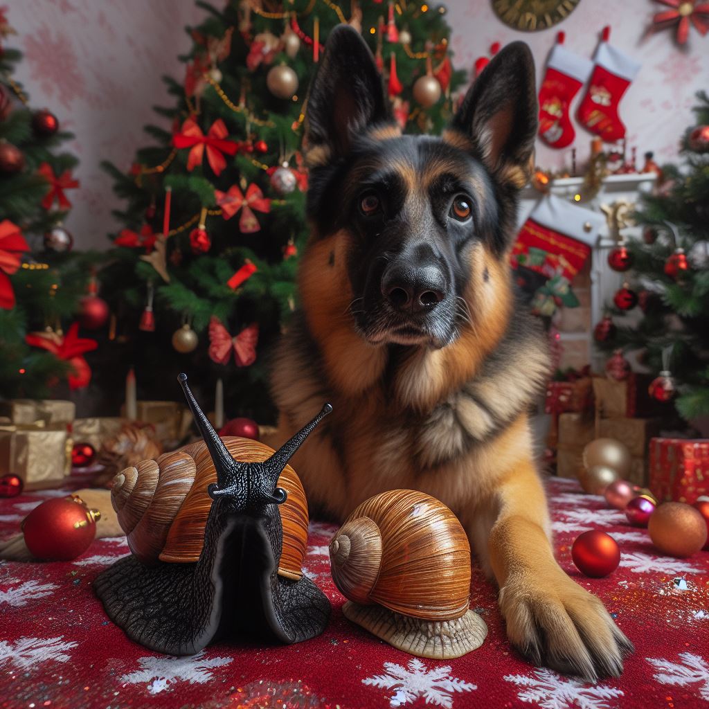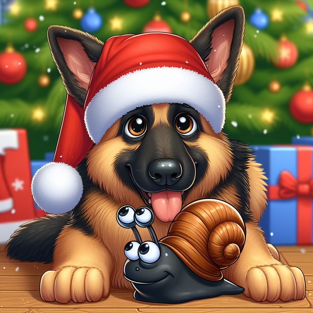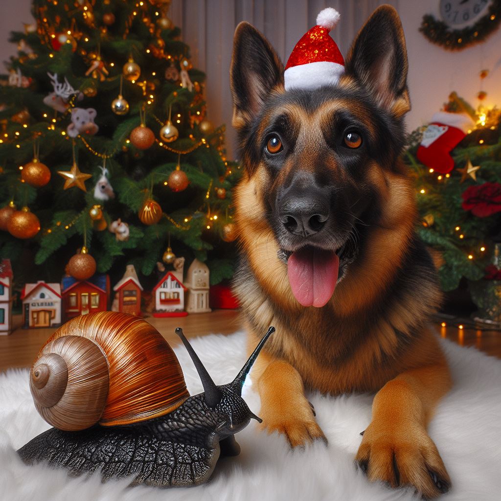 I finally got the result when I said, “A German shepherd and a snail celebrating New Year’s outside with fireworks, the new year is 2024.” But even then…