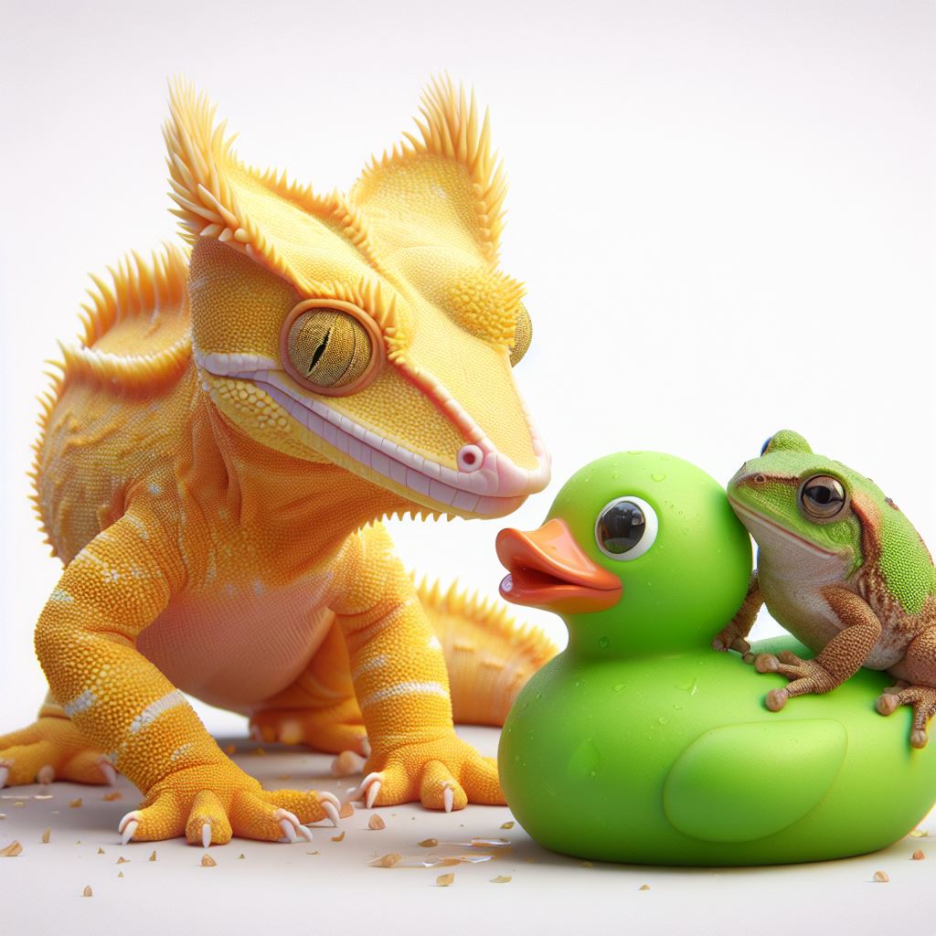 Then Isabella changed everyone’s water bowls and turned their substrate. Wart the toad had a green rubber duck in his water bowl, which was taken out, washed, dusted with cinnamon for scent, and given to Surge the crested gecko to play with.